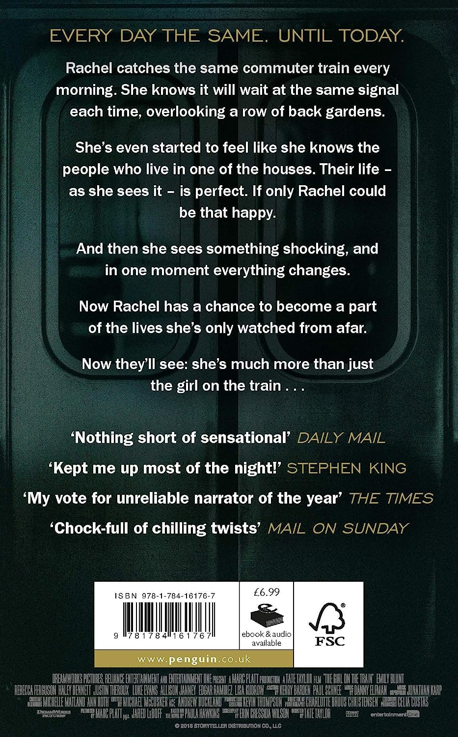 Follow Rachel Watson, an unreliable and troubled narrator, as she becomes entangled in the lives of others during her daily train commute. When Rachel witnesses something shocking, she is drawn into a mysterious disappearance and finds herself caught up in a web of secrets and lies. As the suspense builds, the story unravels, revealing the chilling truth hidden beneath the surface.